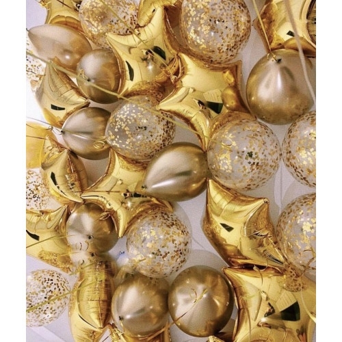 В набор входит 30 Шаров Шар хром 30/35 см золото 10 шт Шар конфетти 30/35 см золото 10 шт Шар 45 см звезда золото 10 шт Время полета 2-е суток